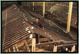 The timber frame was re-erected at a Massachusetts warehouse in September 2000.